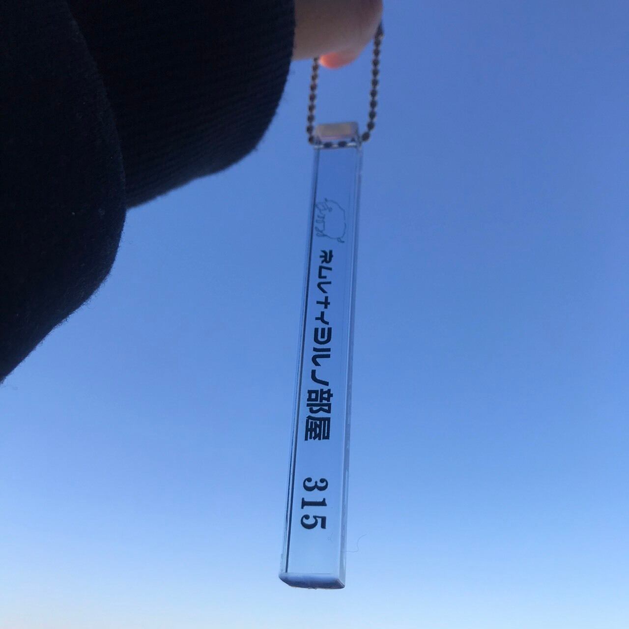 薄ら透ける、ライトブルーのホテルキーホルダー。